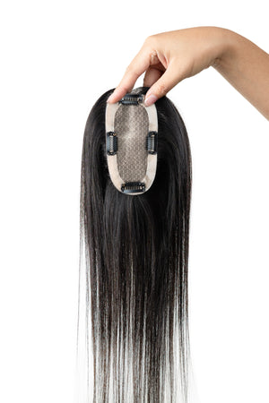 The Silk Topper from Diva Divine is the ultimate solution for thinning hair or adding volume to your crown. Made with premium-quality 100% human hair, it features a realistic silk base that mimics the natural scalp, offering an undetectable and comfortable fit. Perfect for everyday use or special events, the topper blends seamlessly with your natural hair, allowing you to style it effortlessly. Whether you’re looking to conceal thinning areas or simply enhance your look, the Silk Topper offers versatility, durability, and confidence in every wear.